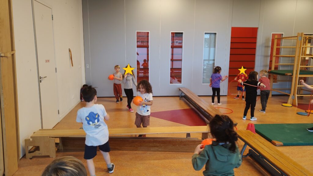 Vandaag stond er weer kleutergym op het programma samen met meester Vincent, en wat hebben de kinderen genoten! In de speelzaal konden zij zich heerlijk uitleven, klimmen en glijden in het klimparcours, stoeien op de matten, trefbal spelen en aan de slag met de hoepels. Overal zag meester Vincent weer enthousiaste gezichten en fanatieke spelers.