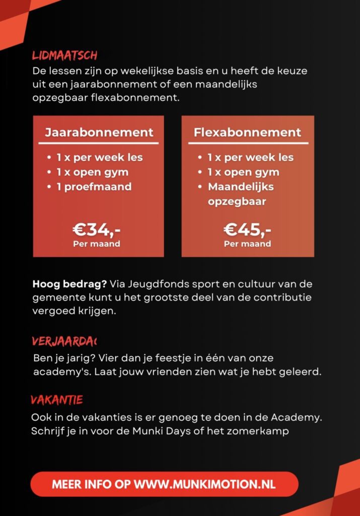Hieronder vindt u informatie van verenigingen, sportservice en MET Heemskerk over activiteiten die zij organiseren na schooltijd. Met deze week een bericht van Munkimotion en MET Heemskerk.