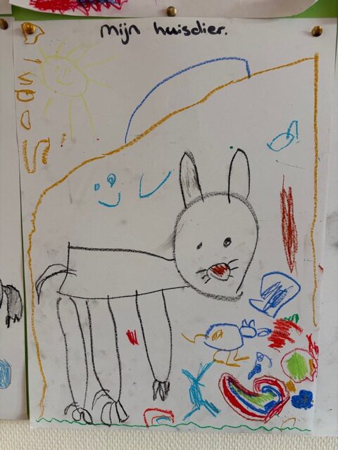 In de klas hebben de kinderen al een mooie tekening gemaakt van hun huisdier of het dier dat ze graag willen hebben. Groep 2 heeft mooie dieren maskers gemaakt!