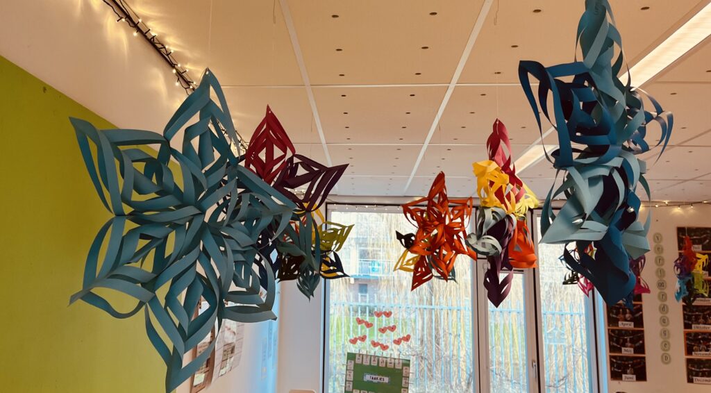 In groep 4 hangt een echte wintersfeer! De leerlingen hebben schitterende kleurrijke ijssterren van papier geknutseld. Met veel inzet en plezier ontstonden de mooiste creaties, die de klas meteen een gezellige, winterse uitstraling geven. Wat zijn we trots op deze creatieve toppers!